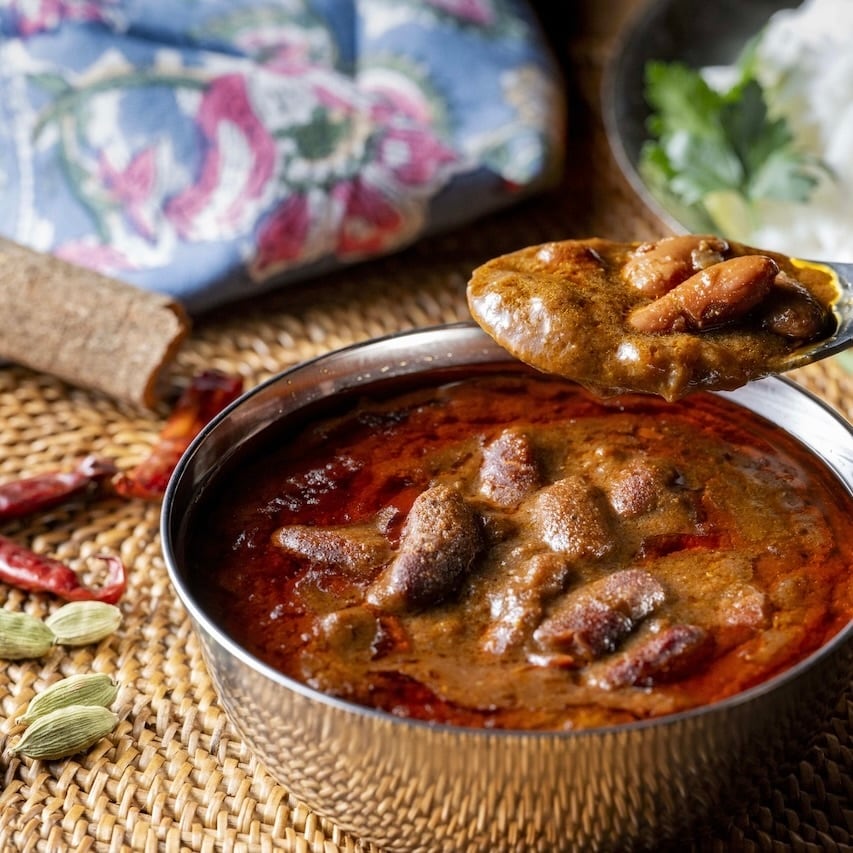 ラジマ(豆)をじっくり煮込み、ほろっと煮崩れる食感に仕上げた北インドの定番豆カレー。